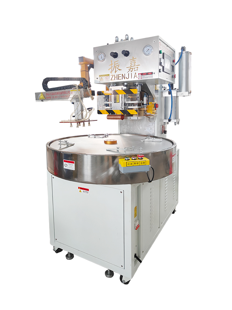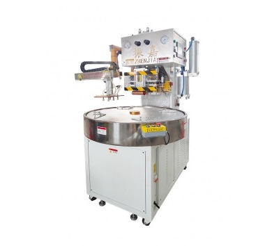 自動高周波機帶機械手,上下模對位準確,操控簡單易懂,便于維護及保養。自動高周波機 的圓盤為圓盤360度旋轉,分為四個工作位,即每90度為一個工作位。此機的圓盤并裝有數字化變頻器,通過帶動電機控制圓盤轉動速度,數字化顯示可調節。本機配有PLC觸摸屏控制,簡單易懂,高效節能。